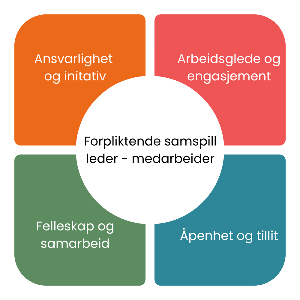 Ansvarlighet og handlingsevne: Fremmer personlig engasjement, ansvarlig medarbeiderskap og varig arbeidsglede.